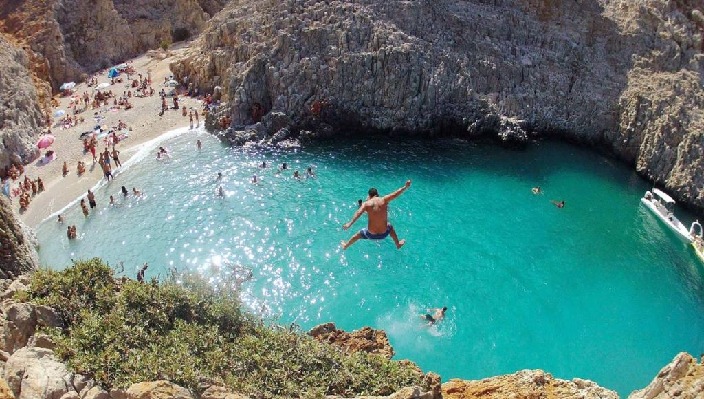Seitan Limanı’nın turistlerden çok yerli halk arasında daha popüler olmasının bir nedeni var: Buraya giden toprak yolları ve keskin virajları aşmak için çelik gibi sinirlere ihtiyacınız var. Kayalıklar boyunca son tırmanış için sağlam ayakkabılar giyin ve yolu kendilerine ait ilan eden arsız keçilere dikkat edin – azimli olanlar, beyaz çakıllı ve masmavi denizli gizli, küçük, zikzaklı bir koya ulaşacaklar. Koyu sabah ziyaret etmek değerlidir, çünkü yüksek kayalıklar plajı Girit’in meşhur rüzgarlarından korur. Ancak öğleden sonra tamamen gölgede kalır.