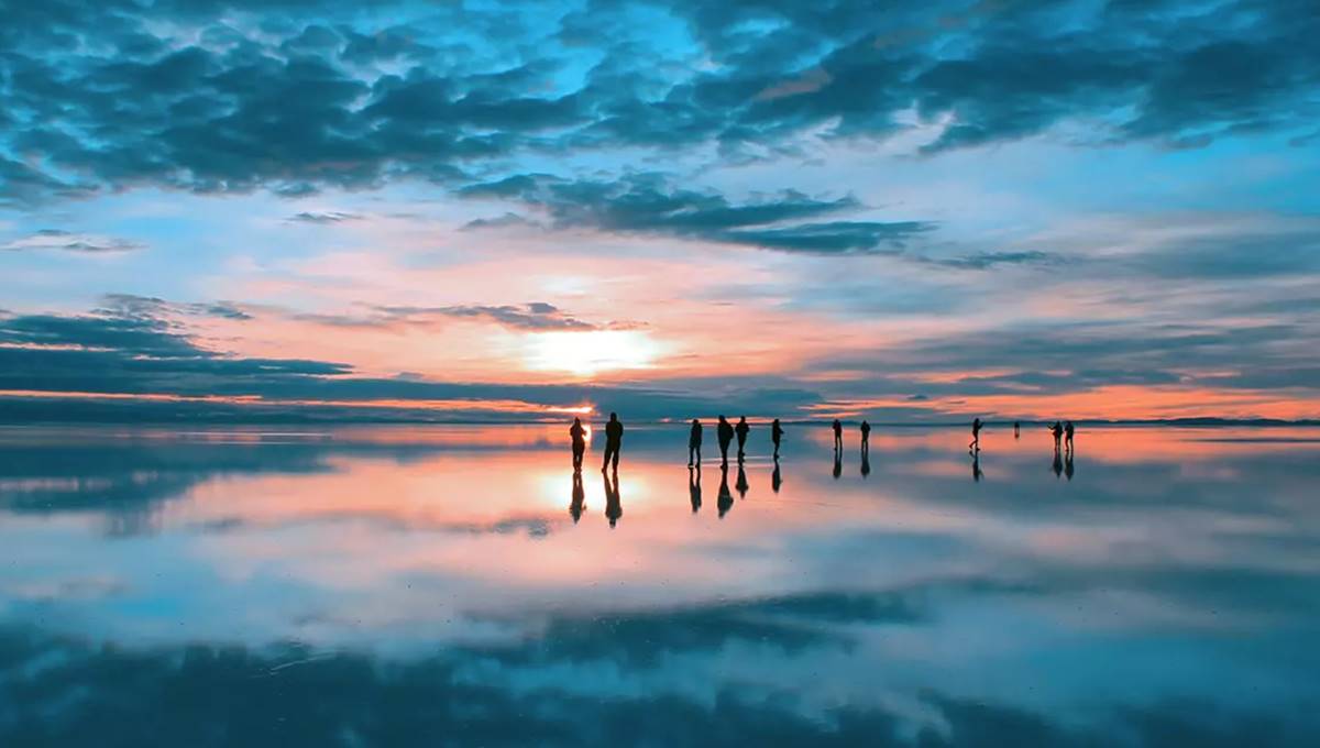 Bolivya platosunun yükseklerinde yer alan Salar de Uyuni, dünyanın en büyük tuz düzlüğüdür. Sular altında kaldığında, bu uçsuz bucaksız beyaz alan, gökyüzünün başka bir dünyaya ait bir aynası haline gelir. Düz ve özelliksiz yüzeyi derinlik algısını ortadan kaldırarak nesnelerin ve insanların minik veya devasa görünmesine neden olur ve ziyaretçiler saatlerce tuhaf optik illüzyonlar yaratırlar.