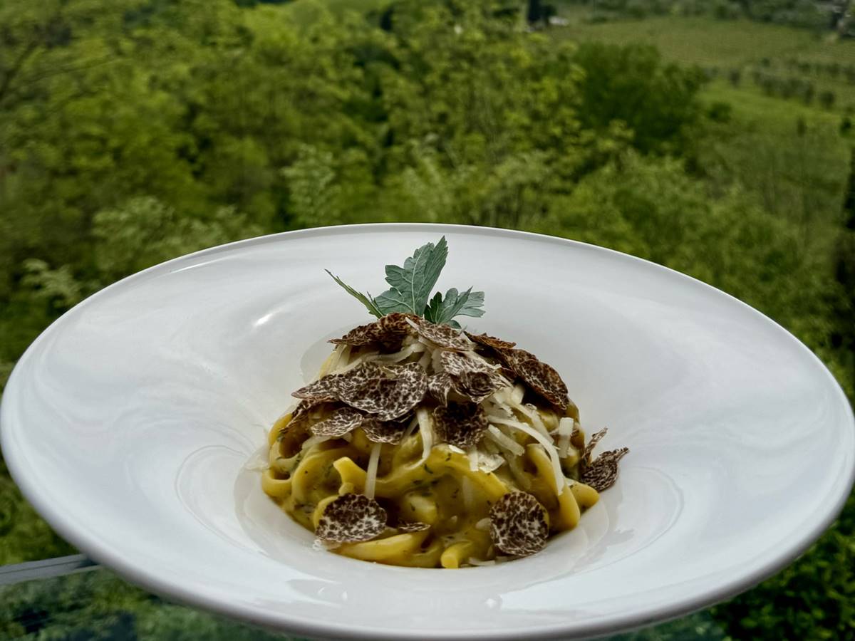 Karbonara sos, trüf mantarı ve Grana Padano peyniri ile “Bel Soggiorno” pici eriştesi